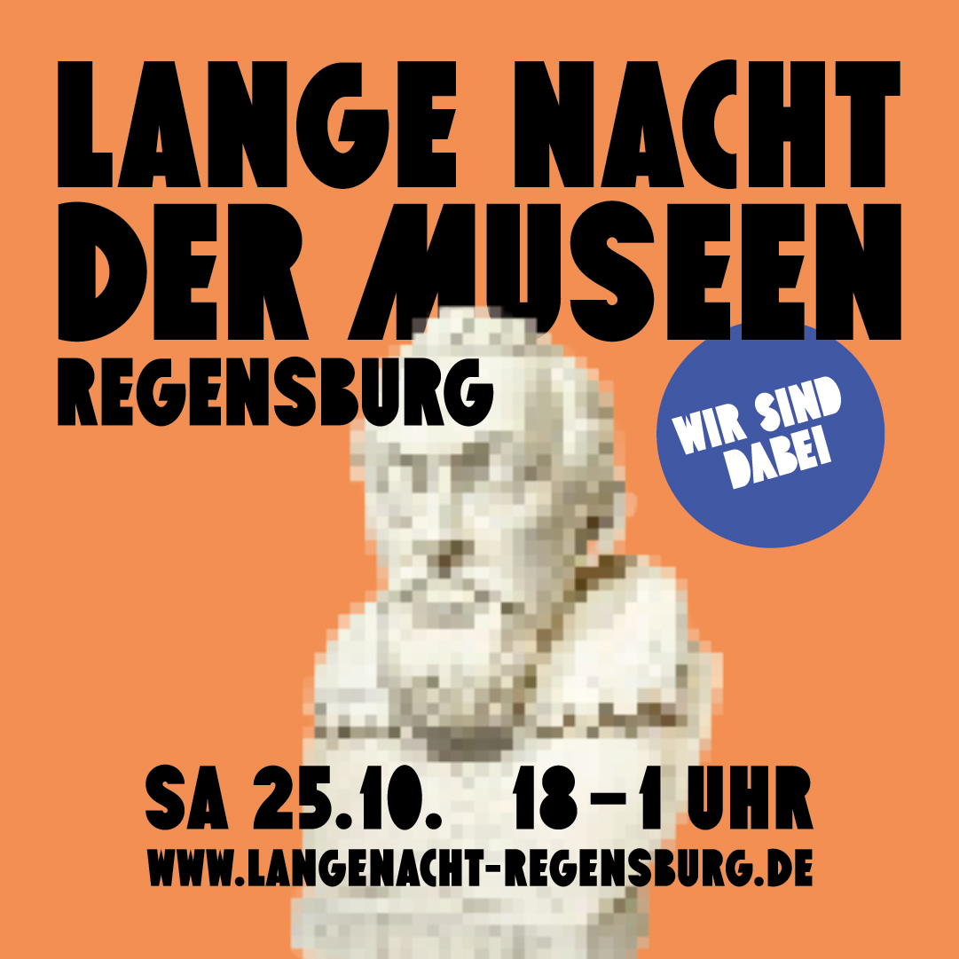 Am Samstag, 25. Oktober ist es endlich wieder so weit: Von 6 Uhr abends bis 1 Uhr nachts öffnen viele Museen in Regensburg gleichzeitig ihre Türen und laden zu ungewöhnlichen Einblicken auf die reichhaltigen Kunstschätze der einzelnen Häuser ein. Die Idee hinter der Langen Nacht: Bei Dunkelheit verändert sich die Atmosphäre, wirken Räume und Objekte auf einmal ganz anders, entstehen Gelegenheiten zu nicht alltäglichen Begegnungen und Gesprächen. Mehr Zeit, mehr Muße, andere Besucherinnen und Besucher: die Lange Nacht der Museen sorgt für ganz persönliche Kulturmomente.